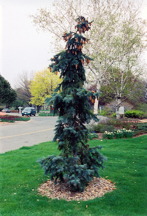 Hardiness Zone: 2b Other Names: Blue Colorado Spruce;Colorado Blue Spruce Description: If you're looking for a large blue spruce tree for your landscape, this is one definitely worth considering, with its sharp steely-blue evergreen needles and tough constitution; a dependable performer that holds its color well Ornamental Features Hoto Blue Spruce is primarily valued in the landscape for its distinctively pyramidal habit of growth. It has attractive powder blue evergreen foliage which emerges silvery blue in spring. The needles are highly ornamental and remain powder blue throughout the winter. The rough gray bark adds an interesting dimension to the landscape. Landscape Attributes Hoto Blue Spruce is an evergreen tree with a strong central leader and a distinctive and refined pyramidal form. Its average texture blends into the landscape, but can be balanced by one or two finer or coarser trees or shrubs for an effective composition. This is a relatively low maintenance tree. When pruning is necessary, it is recommended to only trim back the new growth of the current season, other than to remove any dieback. Deer don't particularly care for this plant and will usually leave it alone in favor of tastier treats. It has no significant negative characteristics. Hoto Blue Spruce is recommended for the following landscape applications; Planting & Growing Hoto Blue Spruce will grow to be about 40 feet tall at maturity, with a spread of 18 feet. It has a low canopy, and should not be planted underneath power lines. It grows at a slow rate, and under ideal conditions can be expected to live for 80 years or more. This tree should only be grown in full sunlight. It is very adaptable to both dry and moist growing conditions, but will not tolerate any standing water. It is considered to be drought-tolerant, and thus makes an ideal choice for xeriscaping or the moisture-conserving landscape. It is not particular as to soil type or pH, and is able to handle environmental salt. It is highly tolerant of urban pollution and will even thrive in inner city environments. This is a selection of a native North American species.