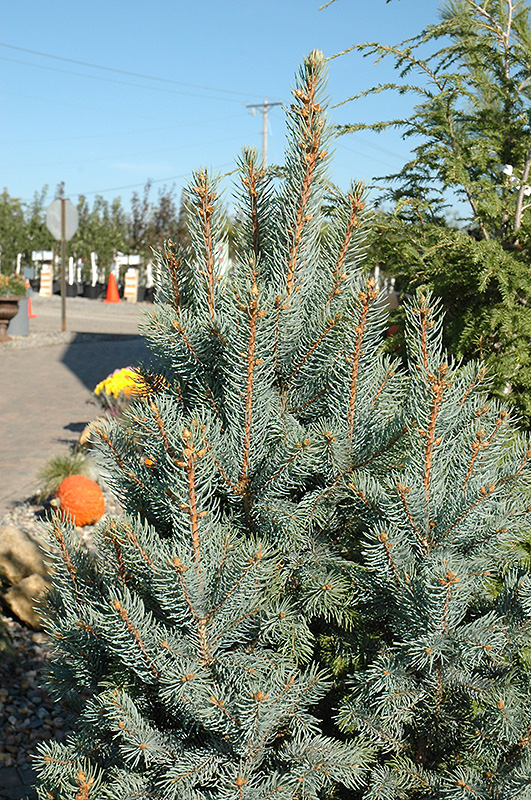 Hardiness Zone: 2b Other Names: Blue Colorado Spruce;Colorado Blue Spruce Description: One of the more distinctive evergreens, featuring bright blue needles on a narrowly upright and columnar form, branches forking upwards at a sharp angle; best used as a vertical accent in smaller home landscapes, really draws the eye Ornamental Features Iseli Fastigiate Spruce is primarily valued in the landscape for its rigidly columnar form. It has attractive bluish-green evergreen foliage which emerges blue in spring. The needles are highly ornamental and remain bluish-green throughout the winter. The rough gray bark adds an interesting dimension to the landscape. Landscape Attributes Iseli Fastigiate Spruce is a dense evergreen tree with a strong central leader and a narrowly upright and columnar growth habit. Its average texture blends into the landscape, but can be balanced by one or two finer or coarser trees or shrubs for an effective composition. This is a relatively low maintenance tree. When pruning is necessary, it is recommended to only trim back the new growth of the current season, other than to remove any dieback. Deer don't particularly care for this plant and will usually leave it alone in favor of tastier treats. It has no significant negative characteristics. Iseli Fastigiate Spruce is recommended for the following landscape applications; Planting & Growing Iseli Fastigiate Spruce will grow to be about 40 feet tall at maturity, with a spread of 15 feet. It has a low canopy with a typical clearance of 3 feet from the ground, and should not be planted underneath power lines. It grows at a slow rate, and under ideal conditions can be expected to live for 80 years or more. This tree should only be grown in full sunlight. It is very adaptable to both dry and moist growing conditions, but will not tolerate any standing water. It is considered to be drought-tolerant, and thus makes an ideal choice for xeriscaping or the moisture-conserving landscape. It is not particular as to soil type or pH, and is able to handle environmental salt. It is highly tolerant of urban pollution and will even thrive in inner city environments. This is a selection of a native North American species.