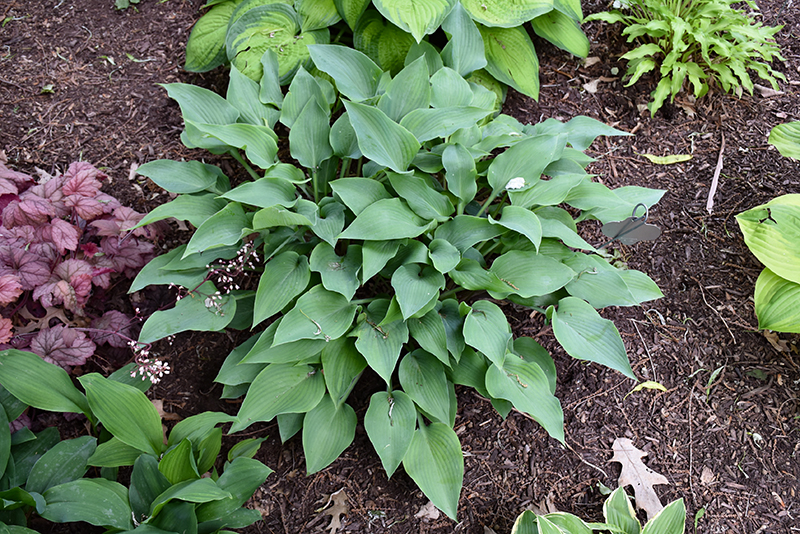 Hardiness Zone: 3a Other Names: Plantain Lily, Funkia Description: A lovely petite variety excellent for border fronts, beds or containers; elongated blue-green foliage throughout the season; pale lavender flowers on tall scapes in mid summer; grow in light to full shade for best blue color Ornamental Features Dewed Steel Hosta features dainty spikes of lavender tubular flowers rising above the foliage in mid summer. Its attractive textured heart-shaped leaves remain steel blue in color throughout the season. Landscape Attributes Dewed Steel Hosta is a dense herbaceous perennial with tall flower stalks held atop a low mound of foliage. Its medium texture blends into the garden, but can always be balanced by a couple of finer or coarser plants for an effective composition. This is a relatively low maintenance plant, and is best cleaned up in early spring before it resumes active growth for the season. Gardeners should be aware of the following characteristic(s) that may warrant special consideration; Dewed Steel Hosta is recommended for the following landscape applications; Planting & Growing Dewed Steel Hosta will grow to be about 12 inches tall at maturity, with a spread of 12 inches. When grown in masses or used as a bedding plant, individual plants should be spaced approximately 12 inches apart. Its foliage tends to remain dense right to the ground, not requiring facer plants in front. It grows at a medium rate, and under ideal conditions can be expected to live for approximately 10 years. As an herbaceous perennial, this plant will usually die back to the crown each winter, and will regrow from the base each spring. Be careful not to disturb the crown in late winter when it may not be readily seen! This plant does best in partial shade to shade. It prefers to grow in average to moist conditions, and shouldn't be allowed to dry out. This plant does not require much in the way of fertilizing once established. It is not particular as to soil type or pH. It is somewhat tolerant of urban pollution. This particular variety is an interspecific hybrid. It can be propagated by division; however, as a cultivated variety, be aware that it may be subject to certain restrictions or prohibitions on propagation.