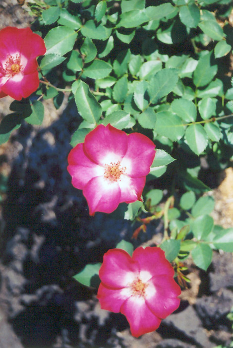 Hardiness Zone: 4a Group/Class: Meidiland Rose Description: A compact rose with endless clusters of smallish single cherry red flowers with showy white centers over a long period of bloom, flower effect is stunning in mass; all roses need full sun and well-drained soil Ornamental Features Cherry Meidiland Rose is clothed in stunning cherry red flowers with yellow eyes and white centers at the ends of the branches from late spring to late summer. The flowers are excellent for cutting. It has dark green deciduous foliage. The oval compound leaves turn yellow in fall. The fruits are showy tomato-orange hips displayed from mid to late fall. Landscape Attributes Cherry Meidiland Rose is a multi-stemmed deciduous shrub with a more or less rounded form. Its average texture blends into the landscape, but can be balanced by one or two finer or coarser trees or shrubs for an effective composition. This is a high maintenance shrub that will require regular care and upkeep, and is best pruned in late winter once the threat of extreme cold has passed. Gardeners should be aware of the following characteristic(s) that may warrant special consideration; Cherry Meidiland Rose is recommended for the following landscape applications; Planting & Growing Cherry Meidiland Rose will grow to be about 12 inches tall at maturity, with a spread of 24 inches. It tends to fill out right to the ground and therefore doesn't necessarily require facer plants in front. It grows at a fast rate, and under ideal conditions can be expected to live for approximately 20 years. This shrub should only be grown in full sunlight. It does best in average to evenly moist conditions, but will not tolerate standing water. It is not particular as to soil type or pH. It is somewhat tolerant of urban pollution. This particular variety is an interspecific hybrid. Cherry Meidiland Rose makes a fine choice for the outdoor landscape, but it is also well-suited for use in outdoor pots and containers. It is often used as a 'filler' in the 'spiller-thriller-filler' container combination, providing a mass of flowers against which the thriller plants stand out. Note that when grown in a container, it may not perform exactly as indicated on the tag - this is to be expected. Also note that when growing plants in outdoor containers and baskets, they may require more frequent waterings than they would in the yard or garden.