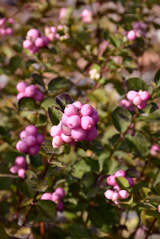 Hardiness Zone: 3b Other Names: Hybrid Snowberry Brand: Bloomin' Easy Description: A versatile compact variety, valued for its clusters of candy colored pink berries that cover rich, mint-green foliage in late summer and early fall; great for cut flower arrangements; excellent for mixed beds, patio containers, or along walkways Ornamental Features Pinky Posy™ Snowberry is primarily grown for its highly ornamental fruit. It features an abundance of magnificent pink berries with white hints from late summer to early fall. It features subtle white bell-shaped flowers with pink overtones along the branches in early summer. It has bluish-green foliage with grayish green undersides. The oval leaves do not develop any appreciable fall color. Landscape Attributes Pinky Posy™ Snowberry is a dense multi-stemmed deciduous shrub with a mounded form. Its average texture blends into the landscape, but can be balanced by one or two finer or coarser trees or shrubs for an effective composition. This shrub will require occasional maintenance and upkeep, and can be pruned at anytime. It is a good choice for attracting birds to your yard, but is not particularly attractive to deer who tend to leave it alone in favor of tastier treats. Gardeners should be aware of the following characteristic(s) that may warrant special consideration; Pinky Posy™ Snowberry is recommended for the following landscape applications; Planting & Growing Pinky Posy™ Snowberry will grow to be about 3 feet tall at maturity, with a spread of 3 feet. It tends to fill out right to the ground and therefore doesn't necessarily require facer plants in front. It grows at a fast rate, and under ideal conditions can be expected to live for approximately 15 years. This shrub does best in full sun to partial shade. It is very adaptable to both dry and moist locations, and should do just fine under typical garden conditions. It is not particular as to soil pH, but grows best in clay soils. It is somewhat tolerant of urban pollution. This particular variety is an interspecific hybrid. Pinky Posy™ Snowberry makes a fine choice for the outdoor landscape, but it is also well-suited for use in outdoor pots and containers. Because of its height, it is often used as a 'thriller' in the 'spiller-thriller-filler' container combination; plant it near the center of the pot, surrounded by smaller plants and those that spill over the edges. It is even sizeable enough that it can be grown alone in a suitable container. Note that when grown in a container, it may not perform exactly as indicated on the tag - this is to be expected. Also note that when growing plants in outdoor containers and baskets, they may require more frequent waterings than they would in the yard or garden.