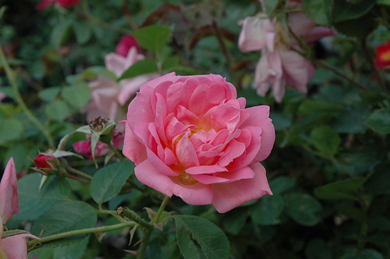 Hardiness Zone: 3a Group/Class: Explorer Rose Description: A recent introduction with significantly improved disease resistance and hardiness, featuring stunning pure pink flowers that open from deep coral buds, yellow centers show through; all roses need full sun and well-drained soil Ornamental Features Marie-Victorin Rose is bathed in stunning double pink flowers with yellow eyes at the ends of the branches from late spring to late summer, which emerge from distinctive coral-pink flower buds. The flowers are excellent for cutting. It has dark green deciduous foliage. The glossy oval compound leaves turn yellow in fall. The spiny brick red bark adds an interesting dimension to the landscape. Landscape Attributes Marie-Victorin Rose is a multi-stemmed deciduous shrub with an upright spreading habit of growth. Its average texture blends into the landscape, but can be balanced by one or two finer or coarser trees or shrubs for an effective composition. This shrub will require occasional maintenance and upkeep, and is best pruned in late winter once the threat of extreme cold has passed. Gardeners should be aware of the following characteristic(s) that may warrant special consideration; Marie-Victorin Rose is recommended for the following landscape applications; Planting & Growing Marie-Victorin Rose will grow to be about 4 feet tall at maturity, with a spread of 4 feet. It tends to fill out right to the ground and therefore doesn't necessarily require facer plants in front. It grows at a fast rate, and under ideal conditions can be expected to live for approximately 20 years. This shrub should only be grown in full sunlight. It does best in average to evenly moist conditions, but will not tolerate standing water. It is not particular as to soil type or pH. It is somewhat tolerant of urban pollution. This particular variety is an interspecific hybrid.