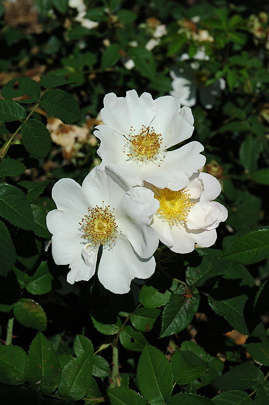 Hardiness Zone: 4a Description: A rare yet special species rose with lush foliage that tends to sprawl and trail, making it an ideal groundcover; single white flowers emerge from pink buds in summer, pleasingly fragrant; needs well-drained soil but will tolerate some shade Ornamental Features Macrantha Dog Rose features showy lightly-scented shell pink flowers with white overtones and yellow eyes at the ends of the branches in early summer, which emerge from distinctive pink flower buds. The flowers are excellent for cutting. The fruits are showy orange hips carried in abundance from early to late fall. It has forest green deciduous foliage. The glossy oval compound leaves turn an outstanding scarlet in the fall. Landscape Attributes Macrantha Dog Rose is a dense multi-stemmed deciduous shrub with a ground-hugging habit of growth. Its average texture blends into the landscape, but can be balanced by one or two finer or coarser trees or shrubs for an effective composition. This is a high maintenance shrub that will require regular care and upkeep, and is best pruned in late winter once the threat of extreme cold has passed. It is a good choice for attracting bees to your yard. Gardeners should be aware of the following characteristic(s) that may warrant special consideration; Macrantha Dog Rose is recommended for the following landscape applications; Planting & Growing Macrantha Dog Rose will grow to be about 3 feet tall at maturity, with a spread of 5 feet. It tends to fill out right to the ground and therefore doesn't necessarily require facer plants in front. It grows at a fast rate, and under ideal conditions can be expected to live for approximately 20 years. This shrub should only be grown in full sunlight. It does best in average to evenly moist conditions, but will not tolerate standing water. It is not particular as to soil type or pH, and is able to handle environmental salt. It is highly tolerant of urban pollution and will even thrive in inner city environments. This species is not originally from North America.