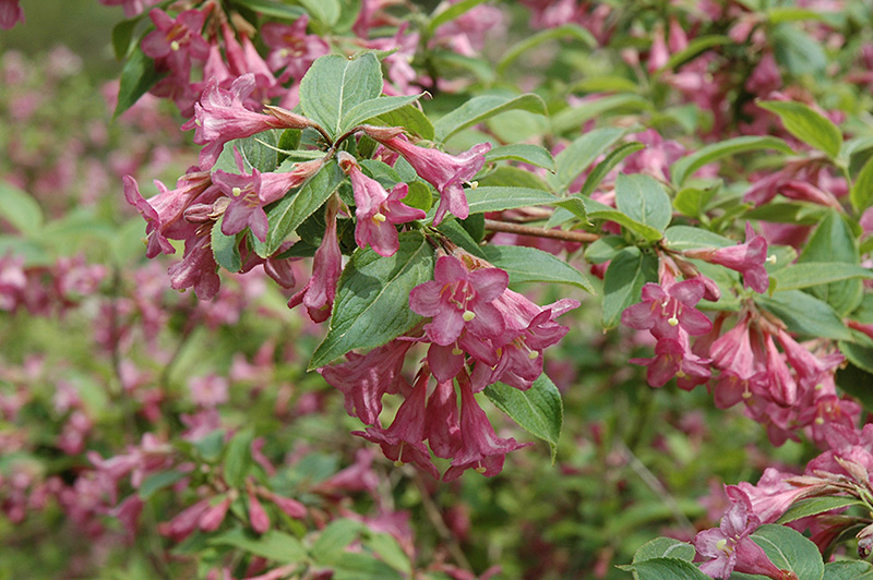 Hardiness Zone: 4b Description: A large upright and spreading shrub with ceamy-yellow variegated leaves that becomes covered in clusters of golden-yellow throated, trumpet-shaped pink blooms which appear early and recur throughout the summer Ornamental Features Early Weigela is covered in stunning clusters of pink trumpet-shaped flowers with yellow throats along the branches in mid spring. It has dark green deciduous foliage. The pointy leaves do not develop any appreciable fall color. Landscape Attributes Early Weigela is a multi-stemmed deciduous shrub with an upright spreading habit of growth. Its relatively coarse texture can be used to stand it apart from other landscape plants with finer foliage. This shrub will require occasional maintenance and upkeep, and should only be pruned after flowering to avoid removing any of the current season's flowers. It is a good choice for attracting hummingbirds to your yard. It has no significant negative characteristics. Early Weigela is recommended for the following landscape applications; Planting & Growing Early Weigela will grow to be about 9 feet tall at maturity, with a spread of 8 feet. It has a low canopy, and is suitable for planting under power lines. It grows at a medium rate, and under ideal conditions can be expected to live for approximately 30 years. This shrub does best in full sun to partial shade. It prefers to grow in average to moist conditions, and shouldn't be allowed to dry out. It is not particular as to soil type or pH. It is highly tolerant of urban pollution and will even thrive in inner city environments. This species is not originally from North America.