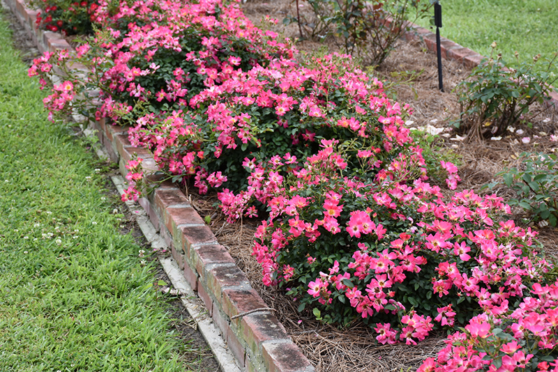 Hardiness Zone: 4b Group/Class: Ground Cover Rose Brand: Drift Description: A wonderful groundcover or border, this low growing mound of stunning deep pink blossoms is a prolific bloomer throughout the season; highly disease resistant; great for small gardens and planters Ornamental Features Pink Drift® Rose is covered in stunning lightly-scented semi-double pink flowers with white streaks at the ends of the branches from late spring to mid fall. The flowers are excellent for cutting. It has dark green deciduous foliage. The glossy oval compound leaves do not develop any appreciable fall color. The fruits are showy red hips displayed in late fall. Landscape Attributes Pink Drift® Rose is a multi-stemmed deciduous shrub with a ground-hugging habit of growth. Its average texture blends into the landscape, but can be balanced by one or two finer or coarser trees or shrubs for an effective composition. This shrub will require occasional maintenance and upkeep, and is best pruned in late winter once the threat of extreme cold has passed. Gardeners should be aware of the following characteristic(s) that may warrant special consideration; Pink Drift® Rose is recommended for the following landscape applications; Planting & Growing Pink Drift® Rose will grow to be about 18 inches tall at maturity, with a spread of 3 feet. It tends to fill out right to the ground and therefore doesn't necessarily require facer plants in front. It grows at a fast rate, and under ideal conditions can be expected to live for approximately 20 years. This shrub should only be grown in full sunlight. It does best in average to evenly moist conditions, but will not tolerate standing water. It is not particular as to soil type or pH. It is somewhat tolerant of urban pollution. This particular variety is an interspecific hybrid. Pink Drift® Rose makes a fine choice for the outdoor landscape, but it is also well-suited for use in outdoor pots and containers. Because of its spreading habit of growth, it is ideally suited for use as a 'spiller' in the 'spiller-thriller-filler' container combination; plant it near the edges where it can spill gracefully over the pot. Note that when grown in a container, it may not perform exactly as indicated on the tag - this is to be expected. Also note that when growing plants in outdoor containers and baskets, they may require more frequent waterings than they would in the yard or garden.