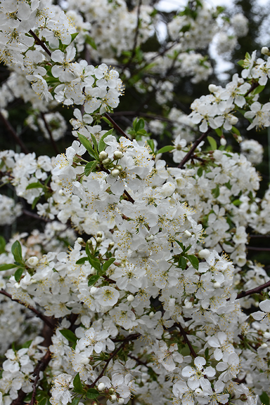 Hardiness Zone: 2a Description: An excellent new introduction with beautiful dark red fruit that is great for fresh eating; this cultivar is vigorous and hardy and produces fewer suckers and is quiet lovely in a landscape setting Edible Qualities Juliet Cherry is a medium-sized shrub that is typically grown for its edible qualities. It produces dark red round fruit (technically 'drupes') with red flesh which are usually ready for picking in late spring. Note that the fruits have hard inedible pits inside which must be removed before eating or processing. The fruits have a sweet taste and a firm texture. The fruit are most often used in the following ways: Features & Attributes Juliet Cherry features showy clusters of fragrant white flowers along the branches in mid spring. It has green deciduous foliage. The glossy oval leaves turn yellow in fall. The fruits are showy dark red drupes carried in abundance from mid to late summer. This is a multi-stemmed deciduous shrub with a more or less rounded form. Its average texture blends into the landscape, but can be balanced by one or two finer or coarser trees or shrubs for an effective composition. This is a high maintenance plant that will require regular care and upkeep, and is best pruned in late winter once the threat of extreme cold has passed. It is a good choice for attracting birds to your yard. Gardeners should be aware of the following characteristic(s) that may warrant special consideration; Aside from its primary use as an edible, Juliet Cherry is sutiable for the following landscape applications; Planting & Growing Juliet Cherry will grow to be about 8 feet tall at maturity, with a spread of 4 feet. It has a low canopy, and is suitable for planting under power lines. It grows at a medium rate, and under ideal conditions can be expected to live for 40 years or more. This is a self-pollinating variety, so it doesn't require a second plant nearby to set fruit. This shrub is typically grown in a designated area of the yard because of its mature size and spread. It should only be grown in full sunlight. It does best in average to evenly moist conditions, but will not tolerate standing water. It is not particular as to soil type or pH. It is highly tolerant of urban pollution and will even thrive in inner city environments. This particular variety is an interspecific hybrid.