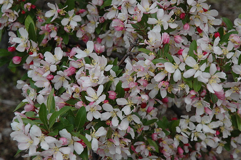 Hardiness Zone: 4a Other Names: Roseybloom, Crabapple Description: A beautiful and hardy cultivar with an nice upward spreading habit; covered in lovely pink blooms that fade to white, fruit is red, small and persistent and adds ornamental value for fall and winter; glorious gold tones greet you in the fall Ornamental Features Leprechaun Flowering Crab is draped in stunning clusters of fragrant pink flowers with white streaks along the branches in mid spring, which emerge from distinctive rose flower buds before the leaves. The fruits are showy red pomes carried in abundance from early to late fall. It has dark green deciduous foliage. The pointy leaves turn an outstanding gold in the fall. Landscape Attributes Leprechaun Flowering Crab is a dense multi-stemmed deciduous shrub with an upright spreading habit of growth. Its average texture blends into the landscape, but can be balanced by one or two finer or coarser trees or shrubs for an effective composition. This shrub will require occasional maintenance and upkeep, and is best pruned in late winter once the threat of extreme cold has passed. It is a good choice for attracting birds to your yard. It has no significant negative characteristics. Leprechaun Flowering Crab is recommended for the following landscape applications; Planting & Growing Leprechaun Flowering Crab will grow to be about 8 feet tall at maturity, with a spread of 8 feet. It has a low canopy with a typical clearance of 2 feet from the ground, and is suitable for planting under power lines. It grows at a medium rate, and under ideal conditions can be expected to live for 50 years or more. This shrub should only be grown in full sunlight. It prefers to grow in average to moist conditions, and shouldn't be allowed to dry out. It is not particular as to soil type or pH. It is highly tolerant of urban pollution and will even thrive in inner city environments. This particular variety is an interspecific hybrid.