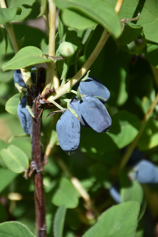 Hardiness Zone: 2a Other Names: Berry Blue, Sweetberry Honeysuckle Description: An interesting hardy shrub with clean foliage and delicious bluish-purple berries that are edible; dense growing habit, must have another honeyberry variety for cross pollination; selected for better fruit production and higher yeilds Edible Qualities Berry Smart™ Blue Honeyberry is a medium-sized shrub that is typically grown for its edible qualities, although it does have ornamental merits as well. It produces navy blue round berries with powder blue overtones which are usually ready for picking from late spring to early summer. The berries have a sweet taste and a fleshy texture. The berries are most often used in the following ways: Features & Attributes Berry Smart™ Blue Honeyberry features subtle creamy white flowers along the branches in early spring. It has green deciduous foliage. The narrow leaves do not develop any appreciable fall color. It features an abundance of magnificent navy blue berries with powder blue overtones in late spring. This is a dense multi-stemmed deciduous shrub with a more or less rounded form. Its average texture blends into the landscape, but can be balanced by one or two finer or coarser trees or shrubs for an effective composition. This plant will require occasional maintenance and upkeep, and is best pruned in late winter once the threat of extreme cold has passed. It is a good choice for attracting butterflies to your yard. It has no significant negative characteristics. Aside from its primary use as an edible, Berry Smart™ Blue Honeyberry is sutiable for the following landscape applications; Planting & Growing Berry Smart™ Blue Honeyberry will grow to be about 5 feet tall at maturity, with a spread of 4 feet. It tends to fill out right to the ground and therefore doesn't necessarily require facer plants in front, and is suitable for planting under power lines. It grows at a medium rate, and under ideal conditions can be expected to live for approximately 20 years. While it is considered to be somewhat self-pollinating, it tends to set heavier quantities of fruit with a different variety of the same species growing nearby. This shrub is quite ornamental as well as edible, and is as much at home in a landscape or flower garden as it is in a designated edibles garden. It does best in full sun to partial shade. It prefers dry to average moisture levels with very well-drained soil, and will often die in standing water. It is not particular as to soil type or pH. It is highly tolerant of urban pollution and will even thrive in inner city environments. This is a selected variety of a species not originally from North America.