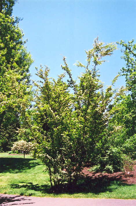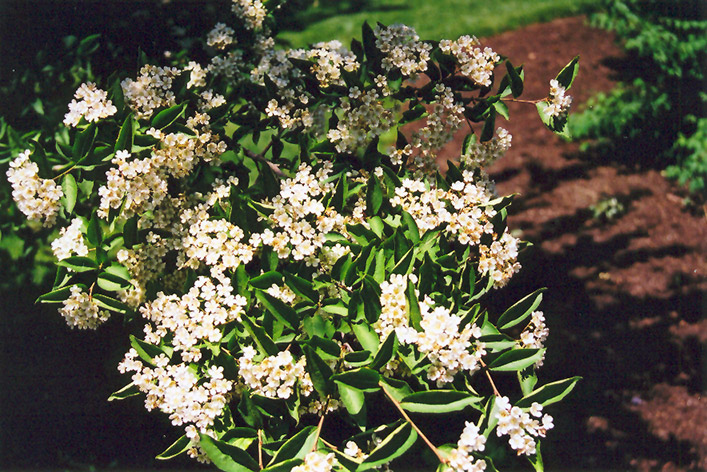 Hardiness Zone: 5a Description: An attractive large shrub which features racemes of pretty white flowers in spring followed by showy red berries and good red fall color; can be susceptible to fireblight where this is a problem, monitor and manage as necessary Ornamental Features Oriental Photinia is primarily grown for its highly ornamental fruit. The fruits are showy red pomes carried in abundance from mid to late fall. It is clothed in stunning clusters of white flowers with yellow anthers held atop the branches from mid to late spring. It has dark green deciduous foliage. The pointy leaves turn an outstanding orange in the fall. Landscape Attributes Oriental Photinia is a multi-stemmed deciduous shrub with an upright spreading habit of growth. Its average texture blends into the landscape, but can be balanced by one or two finer or coarser trees or shrubs for an effective composition. This is a high maintenance shrub that will require regular care and upkeep, and should only be pruned after flowering to avoid removing any of the current season's flowers. It is a good choice for attracting birds to your yard. Gardeners should be aware of the following characteristic(s) that may warrant special consideration; Oriental Photinia is recommended for the following landscape applications; Planting & Growing Oriental Photinia will grow to be about 10 feet tall at maturity, with a spread of 7 feet. It tends to be a little leggy, with a typical clearance of 1 foot from the ground, and is suitable for planting under power lines. It grows at a medium rate, and under ideal conditions can be expected to live for 40 years or more. This shrub does best in full sun to partial shade. You may want to keep it away from hot, dry locations that receive direct afternoon sun or which get reflected sunlight, such as against the south side of a white wall. It is very adaptable to both dry and moist growing conditions, but will not tolerate any standing water. It is considered to be drought-tolerant, and thus makes an ideal choice for xeriscaping or the moisture-conserving landscape. It is not particular as to soil type, but has a definite preference for acidic soils. It is somewhat tolerant of urban pollution. This species is not originally from North America.