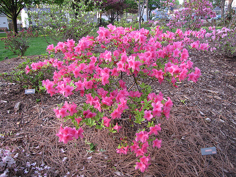Hardiness Zone: 4b Description: Combining superior hardiness, a compact habit and showy blooms this hybrid azalea bears clusters of deep rose-pink flowers on a rounded habit; flaring wavy edged funnel shaped blooms have red spotted upper lobes; has a beautiful garden presentation Ornamental Features Boudoir Azalea is draped in stunning clusters of lightly-scented pink trumpet-shaped flowers with rose overtones at the ends of the branches in mid spring before the leaves. It has dark green deciduous foliage. The narrow leaves do not develop any appreciable fall color. Landscape Attributes Boudoir Azalea is an open multi-stemmed deciduous shrub with a more or less rounded form. Its relatively coarse texture can be used to stand it apart from other landscape plants with finer foliage. This is a relatively low maintenance shrub, and should only be pruned after flowering to avoid removing any of the current season's flowers. It has no significant negative characteristics. Boudoir Azalea is recommended for the following landscape applications; Planting & Growing Boudoir Azalea will grow to be about 5 feet tall at maturity, with a spread of 6 feet. It tends to be a little leggy, with a typical clearance of 1 foot from the ground, and is suitable for planting under power lines. It grows at a slow rate, and under ideal conditions can be expected to live for 40 years or more. This shrub does best in full sun to partial shade. You may want to keep it away from hot, dry locations that receive direct afternoon sun or which get reflected sunlight, such as against the south side of a white wall. It requires an evenly moist well-drained soil for optimal growth, but will die in standing water. It is very fussy about its soil conditions and must have rich, acidic soils to ensure success, and is subject to chlorosis (yellowing) of the foliage in alkaline soils. It is somewhat tolerant of urban pollution, and will benefit from being planted in a relatively sheltered location. Consider applying a thick mulch around the root zone in winter to protect it in exposed locations or colder microclimates. This particular variety is an interspecific hybrid.