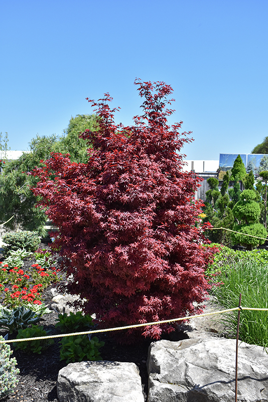 Hardiness Zone: 5b Other Names: Red Sentinel Japanese Maple Description: True to its name, this variety maintains a somewhat columnar form, with burgundy to red foliage all season long, ending in a fiery display in fall; the dense and narrow upright form makes it wonderfully useful for many garden applications Ornamental Features Twombly's Red Sentinel Japanese Maple is primarily valued in the landscape or garden for its rigidly columnar form. It has attractive burgundy deciduous foliage which emerges red in spring. The small lobed palmate leaves are highly ornamental and turn an outstanding crimson in the fall. Landscape Attributes Twombly's Red Sentinel Japanese Maple is a dense deciduous tree with a strong central leader and a narrowly upright and columnar growth habit. Its relatively fine texture sets it apart from other landscape plants with less refined foliage. This is a relatively low maintenance tree, and should only be pruned in summer after the leaves have fully developed, as it may 'bleed' sap if pruned in late winter or early spring. It has no significant negative characteristics. Twombly's Red Sentinel Japanese Maple is recommended for the following landscape applications; Planting & Growing Twombly's Red Sentinel Japanese Maple will grow to be about 10 feet tall at maturity, with a spread of 7 feet. It tends to be a little leggy, with a typical clearance of 2 feet from the ground, and is suitable for planting under power lines. It grows at a slow rate, and under ideal conditions can be expected to live for 60 years or more. This tree does best in full sun to partial shade. You may want to keep it away from hot, dry locations that receive direct afternoon sun or which get reflected sunlight, such as against the south side of a white wall. It prefers to grow in average to moist conditions, and shouldn't be allowed to dry out. This plant should not require much in the way of fertilizing once established, although it may appreciate a shot of general-purpose fertilizer from time to time early in the growing season. It is not particular as to soil pH, but grows best in rich soils. It is somewhat tolerant of urban pollution, and will benefit from being planted in a relatively sheltered location. Consider applying a thick mulch around the root zone in winter to protect it in exposed locations or colder microclimates. This is a selected variety of a species not originally from North America. Twombly's Red Sentinel Japanese Maple is a fine choice for the yard, but it is also a good selection for planting in outdoor pots and containers. Its large size and upright habit of growth lend it for use as a solitary accent, or in a composition surrounded by smaller plants around the base and those that spill over the edges. It is even sizeable enough that it can be grown alone in a suitable container. Note that when grown in a container, it may not perform exactly as indicated on the tag - this is to be expected. Also note that when growing plants in outdoor containers and baskets, they may require more frequent waterings than they would in the yard or garden.