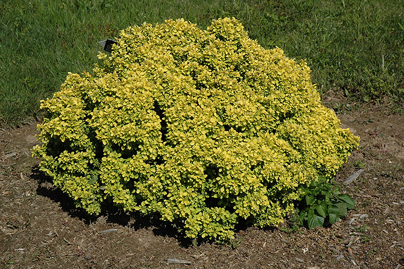Hardiness Zone: 4a Description: This dwarf is a well-shaped mound of golden foliage, tinged with crimson then turning to orange in fall; very showy, great as a color contrast in the landscape; plant on slopes, in beds, as border Ornamental Features Golden Devine Dwarf Japanese Barberry has attractive chartreuse foliage edged in crimson on a plant with a round habit of growth. The small oval leaves are highly ornamental and turn an outstanding orange in the fall. It has clusters of yellow flowers hanging below the branches in mid spring, which are interesting on close inspection. Landscape Attributes Golden Devine Dwarf Japanese Barberry is a dense multi-stemmed deciduous shrub with a more or less rounded form. Its relatively fine texture sets it apart from other landscape plants with less refined foliage. This shrub will require occasional maintenance and upkeep, and can be pruned at anytime. Deer don't particularly care for this plant and will usually leave it alone in favor of tastier treats. Gardeners should be aware of the following characteristic(s) that may warrant special consideration; Golden Devine Dwarf Japanese Barberry is recommended for the following landscape applications; Planting & Growing Golden Devine Dwarf Japanese Barberry will grow to be about 18 inches tall at maturity, with a spread of 18 inches. It tends to fill out right to the ground and therefore doesn't necessarily require facer plants in front. It grows at a medium rate, and under ideal conditions can be expected to live for approximately 20 years. This shrub does best in full sun to partial shade. It is very adaptable to both dry and moist growing conditions, but will not tolerate any standing water. It is not particular as to soil type or pH, and is able to handle environmental salt. It is highly tolerant of urban pollution and will even thrive in inner city environments. This is a selected variety of a species not originally from North America.
