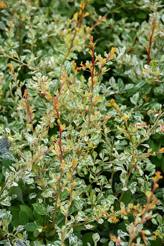 Hardiness Zone: 4a Description: A compact, well-shaped mound of green, chartreuse and cream mottled foliage all summer long, turning to orange in fall; very showy, great as a color contrast in the landscape; plant on slopes, in beds, as border Ornamental Features Lime Glow Japanese Barberry is primarily grown for its highly ornamental fruit. The fruits are showy red drupes carried in abundance from early to late fall. It has attractive creamy white-spotted green foliage with hints of chartreuse. The small oval leaves are highly ornamental and turn an outstanding orange in the fall. It has clusters of yellow flowers hanging below the branches in mid spring, which are interesting on close inspection. Landscape Attributes Lime Glow Japanese Barberry is a dense multi-stemmed deciduous shrub with a more or less rounded form. Its relatively fine texture sets it apart from other landscape plants with less refined foliage. This shrub will require occasional maintenance and upkeep, and can be pruned at anytime. Deer don't particularly care for this plant and will usually leave it alone in favor of tastier treats. Gardeners should be aware of the following characteristic(s) that may warrant special consideration; Lime Glow Japanese Barberry is recommended for the following landscape applications; Planting & Growing Lime Glow Japanese Barberry will grow to be about 3 feet tall at maturity, with a spread of 3 feet. It tends to fill out right to the ground and therefore doesn't necessarily require facer plants in front. It grows at a medium rate, and under ideal conditions can be expected to live for approximately 20 years. This shrub does best in full sun to partial shade. It is very adaptable to both dry and moist growing conditions, but will not tolerate any standing water. It is considered to be drought-tolerant, and thus makes an ideal choice for a low-water garden or xeriscape application. It is not particular as to soil type or pH, and is able to handle environmental salt. It is highly tolerant of urban pollution and will even thrive in inner city environments. This is a selected variety of a species not originally from North America.