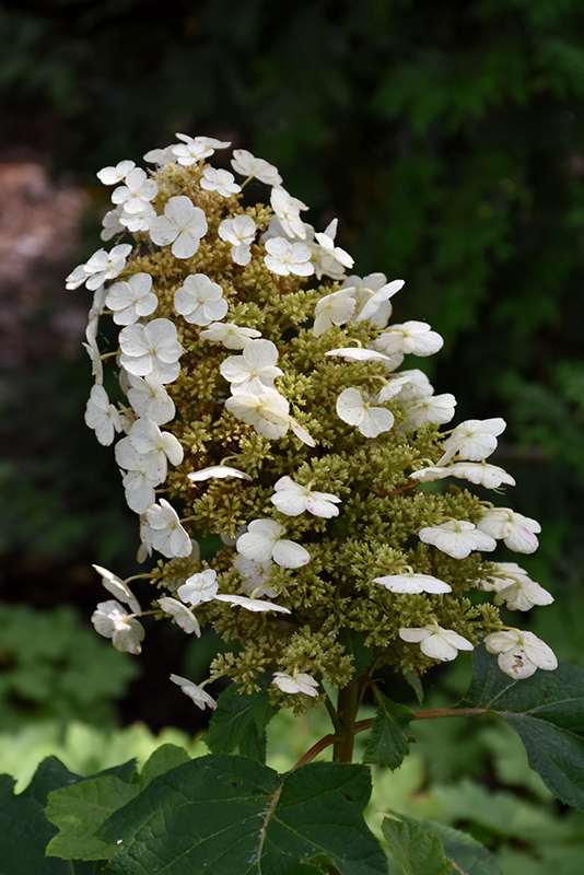 Hardiness Zone: 4b Other Names: Oak Leaf Hydrangea Description: Unique oakleaf foliage and showy, upright, white flower spikes really make this shrub stand out; a more compact form; reliable fall color and papery bark; requires good drainage and is somewhat drought tolerant Ornamental Features Sikes Dwarf Hydrangea features bold fragrant conical white flowers with pink overtones at the ends of the branches from early to mid summer. The flowers are excellent for cutting. It has dark green deciduous foliage which emerges grayish green in spring. The large fuzzy lobed leaves turn an outstanding burgundy in the fall. The peeling brick red bark adds an interesting dimension to the landscape. Landscape Attributes Sikes Dwarf Hydrangea is a multi-stemmed deciduous shrub with an upright spreading habit of growth. Its relatively coarse texture can be used to stand it apart from other landscape plants with finer foliage. This is a relatively low maintenance shrub, and is best pruned in late winter once the threat of extreme cold has passed. It has no significant negative characteristics. Sikes Dwarf Hydrangea is recommended for the following landscape applications; Planting & Growing Sikes Dwarf Hydrangea will grow to be about 4 feet tall at maturity, with a spread of 4 feet. It has a low canopy. It grows at a slow rate, and under ideal conditions can be expected to live for approximately 30 years. This shrub performs well in both full sun and full shade. It prefers to grow in average to moist conditions, and shouldn't be allowed to dry out. It is not particular as to soil type or pH. It is somewhat tolerant of urban pollution, and will benefit from being planted in a relatively sheltered location. Consider applying a thick mulch around the root zone in winter to protect it in exposed locations or colder microclimates. This is a selection of a native North American species. Sikes Dwarf Hydrangea makes a fine choice for the outdoor landscape, but it is also well-suited for use in outdoor pots and containers. With its upright habit of growth, it is best suited for use as a 'thriller' in the 'spiller-thriller-filler' container combination; plant it near the center of the pot, surrounded by smaller plants and those that spill over the edges. It is even sizeable enough that it can be grown alone in a suitable container. Note that when grown in a container, it may not perform exactly as indicated on the tag - this is to be expected. Also note that when growing plants in outdoor containers and baskets, they may require more frequent waterings than they would in the yard or garden.