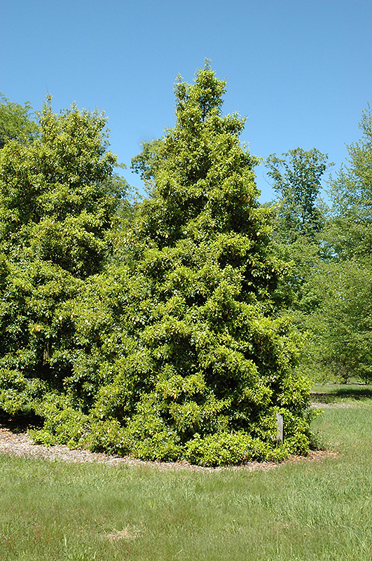 Hardiness Zone: 5b Description: This dense, upright holly has spiny, leathery, olive-green evergreen leaves; showy orange-red berries in winter; an excellent specimen plant for the home landscape, does best in evenly moist, acidic soils Ornamental Features Chief Paduke American Holly is primarily grown for its highly ornamental fruit. It features an abundance of magnificent scarlet berries from mid fall to late winter. It has olive green evergreen foliage. The spiny oval leaves remain olive green throughout the winter. Landscape Attributes Chief Paduke American Holly is a dense evergreen tree with a strong central leader and a distinctive and refined pyramidal form. Its average texture blends into the landscape, but can be balanced by one or two finer or coarser trees or shrubs for an effective composition. This tree will require occasional maintenance and upkeep, and is best pruned in late winter once the threat of extreme cold has passed. It is a good choice for attracting birds to your yard. Gardeners should be aware of the following characteristic(s) that may warrant special consideration; Chief Paduke American Holly is recommended for the following landscape applications; Planting & Growing Chief Paduke American Holly will grow to be about 30 feet tall at maturity, with a spread of 20 feet. It has a low canopy with a typical clearance of 3 feet from the ground, and should not be planted underneath power lines. It grows at a slow rate, and under ideal conditions can be expected to live for 80 years or more. This is a female variety of the species which requires a male selection of the same species growing nearby in order to set fruit. This tree does best in full sun to partial shade. It requires an evenly moist well-drained soil for optimal growth, but will die in standing water. It is very fussy about its soil conditions and must have rich, acidic soils to ensure success, and is subject to chlorosis (yellowing) of the foliage in alkaline soils. It is somewhat tolerant of urban pollution. Consider applying a thick mulch around the root zone in winter to protect it in exposed locations or colder microclimates. This is a selection of a native North American species.