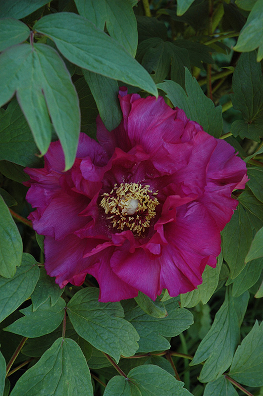 Hardiness Zone: 4a Description: A beautiful woody peony for the garden, with bold flowers in a rich deep reddish-purple with prominent yellow stamens, great as an accent in the garden or massed in borders; remember to avoid pruning this variety Ornamental Features Shiko Tree Peony features bold lightly-scented semi-double deep purple flowers with yellow centers at the ends of the branches from mid to late spring. The flowers are excellent for cutting. It has green deciduous foliage. The narrow compound leaves do not develop any appreciable fall color. Landscape Attributes Shiko Tree Peony is a multi-stemmed deciduous shrub with an upright spreading habit of growth. Its relatively fine texture sets it apart from other landscape plants with less refined foliage. This is a relatively low maintenance shrub, and should not require much pruning, except when necessary, such as to remove dieback. It is a good choice for attracting butterflies to your yard, but is not particularly attractive to deer who tend to leave it alone in favor of tastier treats. It has no significant negative characteristics. Shiko Tree Peony is recommended for the following landscape applications; Planting & Growing Shiko Tree Peony will grow to be about 5 feet tall at maturity, with a spread of 5 feet. It has a low canopy, and is suitable for planting under power lines. It grows at a slow rate, and under ideal conditions can be expected to live for approximately 20 years. This shrub does best in full sun to partial shade. It does best in average to evenly moist conditions, but will not tolerate standing water. It is not particular as to soil pH, but grows best in rich soils. It is quite intolerant of urban pollution, therefore inner city or urban streetside plantings are best avoided. Consider applying a thick mulch around the root zone in winter to protect it in exposed locations or colder microclimates. This is a selected variety of a species not originally from North America.