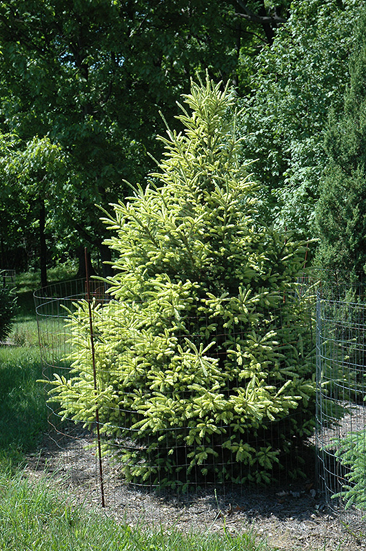 Hardiness Zone: 3a Description: A very beautiful, unusual conifer displaying butter yellow new growth that slowly turns green when it matures; ideal as a garden accent; handsome upswept branches, conical habit and the unusual color make this one an excellent choice as an accent tree Ornamental Features McConnell's Gold Spruce is primarily valued in the landscape for its distinctively pyramidal habit of growth. It has attractive green evergreen foliage which emerges buttery yellow in spring. The needles are highly ornamental and remain green throughout the winter. Landscape Attributes McConnell's Gold Spruce is a dense evergreen tree with a strong central leader and a distinctive and refined pyramidal form. It lends an extremely fine and delicate texture to the landscape composition which can make it a great accent feature on this basis alone. This is a relatively low maintenance tree. When pruning is necessary, it is recommended to only trim back the new growth of the current season, other than to remove any dieback. It has no significant negative characteristics. McConnell's Gold Spruce is recommended for the following landscape applications; Planting & Growing McConnell's Gold Spruce will grow to be about 20 feet tall at maturity, with a spread of 10 feet. It has a low canopy, and is suitable for planting under power lines. It grows at a slow rate, and under ideal conditions can be expected to live for 50 years or more. This tree does best in full sun to partial shade. It prefers to grow in average to moist conditions, and shouldn't be allowed to dry out. It is not particular as to soil type or pH. It is quite intolerant of urban pollution, therefore inner city or urban streetside plantings are best avoided, and will benefit from being planted in a relatively sheltered location. This is a selection of a native North American species.