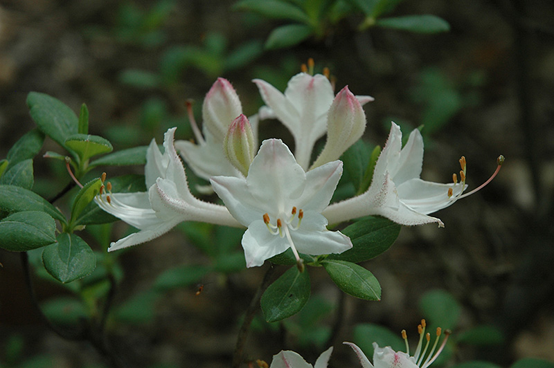 Hardiness Zone: 4b Description: This is a polyploid form of 'Snowbird' and is considered by many to be the most fragrant of azaleas; pure white blooms with dramatic pointed petals cover this shrub in mid spring; must have well drained, acidic, and organic soil Ornamental Features Fragrant Star Azalea is covered in stunning clusters of fragrant white trumpet-shaped flowers at the ends of the branches in mid spring, which emerge from distinctive pink flower buds before the leaves. It has bluish-green deciduous foliage. The narrow leaves turn an outstanding gray in the fall. Landscape Attributes Fragrant Star Azalea is an open multi-stemmed deciduous shrub with an upright spreading habit of growth. Its relatively coarse texture can be used to stand it apart from other landscape plants with finer foliage. This is a relatively low maintenance shrub, and should only be pruned after flowering to avoid removing any of the current season's flowers. It has no significant negative characteristics. Fragrant Star Azalea is recommended for the following landscape applications; Planting & Growing Fragrant Star Azalea will grow to be about 5 feet tall at maturity, with a spread of 5 feet. It tends to be a little leggy, with a typical clearance of 1 foot from the ground, and is suitable for planting under power lines. It grows at a slow rate, and under ideal conditions can be expected to live for 40 years or more. This shrub does best in full sun to partial shade. You may want to keep it away from hot, dry locations that receive direct afternoon sun or which get reflected sunlight, such as against the south side of a white wall. It requires an evenly moist well-drained soil for optimal growth, but will die in standing water. It is very fussy about its soil conditions and must have rich, acidic soils to ensure success, and is subject to chlorosis (yellowing) of the foliage in alkaline soils. It is somewhat tolerant of urban pollution, and will benefit from being planted in a relatively sheltered location. Consider applying a thick mulch around the root zone in winter to protect it in exposed locations or colder microclimates. This particular variety is an interspecific hybrid.
