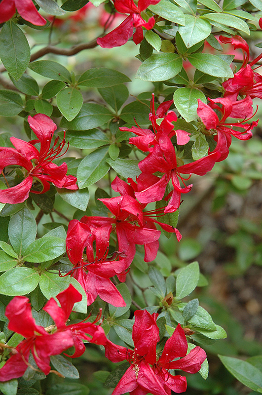 Hardiness Zone: 4b Group/Class: Schroeder Hybrids Ornamental Features Hoosier Hysteria Azalea is covered in stunning clusters of lightly-scented cherry red trumpet-shaped flowers at the ends of the branches in mid spring before the leaves. It has green deciduous foliage. The narrow leaves do not develop any appreciable fall color. Landscape Attributes Hoosier Hysteria Azalea is an open multi-stemmed deciduous shrub with an upright spreading habit of growth. Its relatively coarse texture can be used to stand it apart from other landscape plants with finer foliage. This is a relatively low maintenance shrub, and should only be pruned after flowering to avoid removing any of the current season's flowers. It has no significant negative characteristics. Hoosier Hysteria Azalea is recommended for the following landscape applications; Planting & Growing Hoosier Hysteria Azalea will grow to be about 6 feet tall at maturity, with a spread of 6 feet. It tends to be a little leggy, with a typical clearance of 1 foot from the ground, and is suitable for planting under power lines. It grows at a slow rate, and under ideal conditions can be expected to live for 40 years or more. This shrub does best in full sun to partial shade. You may want to keep it away from hot, dry locations that receive direct afternoon sun or which get reflected sunlight, such as against the south side of a white wall. It requires an evenly moist well-drained soil for optimal growth, but will die in standing water. It is very fussy about its soil conditions and must have rich, acidic soils to ensure success, and is subject to chlorosis (yellowing) of the foliage in alkaline soils. It is somewhat tolerant of urban pollution, and will benefit from being planted in a relatively sheltered location. Consider applying a thick mulch around the root zone in winter to protect it in exposed locations or colder microclimates. This particular variety is an interspecific hybrid.