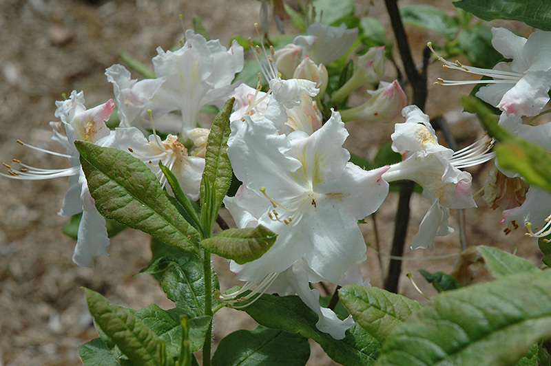 Hardiness Zone: 4b Group/Class: Knap Hill Hybrids Description: A pretty variety with bright white blooms with streaks of pink and a yellow blotch; blooms in mid spring, creating an impressive border or low screen; absolutely must have well-drained, highly acidic and organic soil Ornamental Features Lace Valentine Azalea is covered in stunning clusters of lightly-scented white trumpet-shaped flowers with a yellow blotch at the ends of the branches in mid spring, which emerge from distinctive shell pink flower buds before the leaves. It has green deciduous foliage. The narrow leaves turn an outstanding red in the fall. Landscape Attributes Lace Valentine Azalea is an open multi-stemmed deciduous shrub with an upright spreading habit of growth. Its relatively coarse texture can be used to stand it apart from other landscape plants with finer foliage. This is a relatively low maintenance shrub, and should only be pruned after flowering to avoid removing any of the current season's flowers. It has no significant negative characteristics. Lace Valentine Azalea is recommended for the following landscape applications; Planting & Growing Lace Valentine Azalea will grow to be about 10 feet tall at maturity, with a spread of 10 feet. It tends to be a little leggy, with a typical clearance of 1 foot from the ground, and is suitable for planting under power lines. It grows at a slow rate, and under ideal conditions can be expected to live for 40 years or more. This shrub does best in full sun to partial shade. You may want to keep it away from hot, dry locations that receive direct afternoon sun or which get reflected sunlight, such as against the south side of a white wall. It requires an evenly moist well-drained soil for optimal growth, but will die in standing water. It is very fussy about its soil conditions and must have rich, acidic soils to ensure success, and is subject to chlorosis (yellowing) of the foliage in alkaline soils. It is somewhat tolerant of urban pollution, and will benefit from being planted in a relatively sheltered location. Consider applying a thick mulch around the root zone in winter to protect it in exposed locations or colder microclimates. This particular variety is an interspecific hybrid.