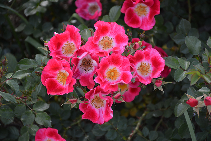 Hardiness Zone: 4b Group/Class: Shrub Rose Description: A true red hardy shrub rose; an excellent landscape plant with superior disease resistance, a better plant habit, and a great non-fading red color; steady blooming all season adds color and intrest to the garden and borders Ornamental Features Carefree Spirit Rose is bathed in stunning red flowers with gold eyes and white centers at the ends of the branches from late spring to late summer. The flowers are excellent for cutting. It has dark green deciduous foliage. The glossy oval compound leaves turn yellow in fall. Landscape Attributes Carefree Spirit Rose is a multi-stemmed deciduous shrub with an upright spreading habit of growth. Its average texture blends into the landscape, but can be balanced by one or two finer or coarser trees or shrubs for an effective composition. This shrub will require occasional maintenance and upkeep, and is best pruned in late winter once the threat of extreme cold has passed. Gardeners should be aware of the following characteristic(s) that may warrant special consideration; Carefree Spirit Rose is recommended for the following landscape applications; Planting & Growing Carefree Spirit Rose will grow to be about 5 feet tall at maturity, with a spread of 5 feet. It tends to fill out right to the ground and therefore doesn't necessarily require facer plants in front, and is suitable for planting under power lines. It grows at a fast rate, and under ideal conditions can be expected to live for approximately 20 years. This shrub should only be grown in full sunlight. It does best in average to evenly moist conditions, but will not tolerate standing water. It is not particular as to soil type or pH. It is highly tolerant of urban pollution and will even thrive in inner city environments. This particular variety is an interspecific hybrid.