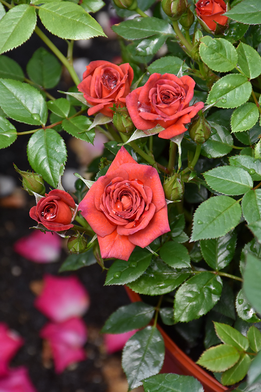 Hardiness Zone: 5b Group/Class: Miniature Rose Description: A unique miniature variety with glossy green leaves and blossoms that are shades of red with a smokey tint; excellent for smaller garden areas and planters Ornamental Features Coffee Bean™ Rose features showy lightly-scented double brick red flowers with coppery-bronze overtones and gold eyes at the ends of the branches from late spring to early fall. The flowers are excellent for cutting. It has dark green deciduous foliage. The glossy oval compound leaves do not develop any appreciable fall color. Landscape Attributes Coffee Bean™ Rose is a multi-stemmed deciduous shrub with an upright spreading habit of growth. Its average texture blends into the landscape, but can be balanced by one or two finer or coarser trees or shrubs for an effective composition. This shrub will require occasional maintenance and upkeep, and is best pruned in late winter once the threat of extreme cold has passed. It has no significant negative characteristics. Coffee Bean™ Rose is recommended for the following landscape applications; Planting & Growing Coffee Bean™ Rose will grow to be about 24 inches tall at maturity, with a spread of 24 inches. It tends to fill out right to the ground and therefore doesn't necessarily require facer plants in front. It grows at a fast rate, and under ideal conditions can be expected to live for approximately 30 years. This shrub should only be grown in full sunlight. It does best in average to evenly moist conditions, but will not tolerate standing water. It is not particular as to soil type or pH. It is highly tolerant of urban pollution and will even thrive in inner city environments. This particular variety is an interspecific hybrid. Coffee Bean™ Rose makes a fine choice for the outdoor landscape, but it is also well-suited for use in outdoor pots and containers. With its upright habit of growth, it is best suited for use as a 'thriller' in the 'spiller-thriller-filler' container combination; plant it near the center of the pot, surrounded by smaller plants and those that spill over the edges. It is even sizeable enough that it can be grown alone in a suitable container. Note that when grown in a container, it may not perform exactly as indicated on the tag - this is to be expected. Also note that when growing plants in outdoor containers and baskets, they may require more frequent waterings than they would in the yard or garden.