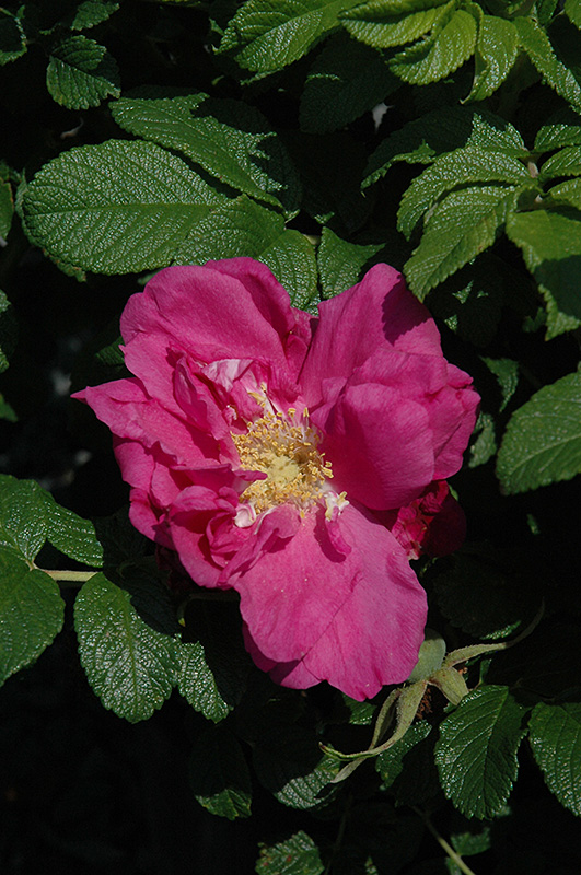 Hardiness Zone: 4a Group/Class: Rugosa Shrub Rose Description: The name says it all; a very hardy spreading rugosa hybrid with very fragrant, large double fuscia flowers; autumn brings large orange hips; the crinkled foliage gives a colorful fall show; very disease resistant and vigorous Ornamental Features Magnifica Rose features showy fragrant double fuchsia flowers along the branches from late spring to mid fall. The flowers are excellent for cutting. It has green deciduous foliage which emerges burgundy in spring. The crinkled oval compound leaves turn harvest gold in fall. Landscape Attributes Magnifica Rose is a multi-stemmed deciduous shrub with an upright spreading habit of growth. Its average texture blends into the landscape, but can be balanced by one or two finer or coarser trees or shrubs for an effective composition. This shrub will require occasional maintenance and upkeep, and is best pruned in late winter once the threat of extreme cold has passed. It is a good choice for attracting bees to your yard. Gardeners should be aware of the following characteristic(s) that may warrant special consideration; Magnifica Rose is recommended for the following landscape applications; Planting & Growing Magnifica Rose will grow to be about 5 feet tall at maturity, with a spread of 6 feet. It tends to fill out right to the ground and therefore doesn't necessarily require facer plants in front, and is suitable for planting under power lines. It grows at a medium rate, and under ideal conditions can be expected to live for approximately 20 years. This shrub should only be grown in full sunlight. It does best in average to evenly moist conditions, but will not tolerate standing water. It is not particular as to soil type or pH. It is somewhat tolerant of urban pollution. This particular variety is an interspecific hybrid.