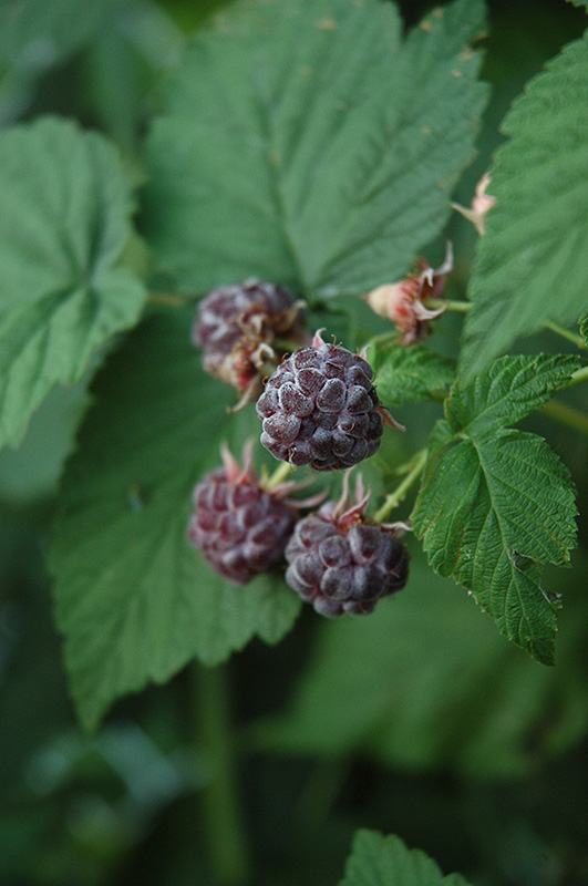 Hardiness Zone: 3a Other Names: Wyoming Black Raspberry Group/Class: Floricane - Summer Bearing Description: A hardy disease-resistant variety producing black fruit with great aroma and flavor on a wiry shrub with enormous canes; this variety is non-suckering; raspberries are quite shrubby looking and requires a specific pruning regimen and protection from birds Edible Qualities Wyoming Raspberry is a medium-sized shrub that is typically grown for its edible qualities. It produces clusters of deep purple heart-shaped berries with black overtones which are usually ready for picking in mid summer. The berries have a sweet taste and a juicy texture. The berries are most often used in the following ways: Features & Attributes Wyoming Raspberry has rich green deciduous foliage on a plant with an arching habit of growth. The fuzzy oval compound leaves do not develop any appreciable fall color. It features an abundance of magnificent deep purple berries with black overtones from mid summer to early fall. This is an open multi-stemmed deciduous shrub with a shapely form and gracefully arching branches. Its relatively coarse texture can be used to stand it apart from other landscape plants with finer foliage. This is a high maintenance plant that will require regular care and upkeep. Each spring, cut back all dead and two-year old canes to the ground, leaving only last year's growth standing. It is a good choice for attracting birds to your yard. Gardeners should be aware of the following characteristic(s) that may warrant special consideration; Aside from its primary use as an edible, Wyoming Raspberry is sutiable for the following landscape applications; Planting & Growing Wyoming Raspberry will grow to be about 8 feet tall at maturity, with a spread of 4 feet. It tends to be a little leggy, with a typical clearance of 3 feet from the ground, and is suitable for planting under power lines. It grows at a fast rate, and under ideal conditions can be expected to live for approximately 10 years. This is a self-pollinating variety, so it doesn't require a second plant nearby to set fruit. This shrub may not always play well with others; as such, it is best grown in its own designated garden space or isolated area of an edibles garden. It should only be grown in full sunlight. It prefers to grow in average to moist conditions, and shouldn't be allowed to dry out. It is not particular as to soil type or pH. It is somewhat tolerant of urban pollution. This particular variety is an interspecific hybrid. It can be propagated by division; however, as a cultivated variety, be aware that it may be subject to certain restrictions or prohibitions on propagation.