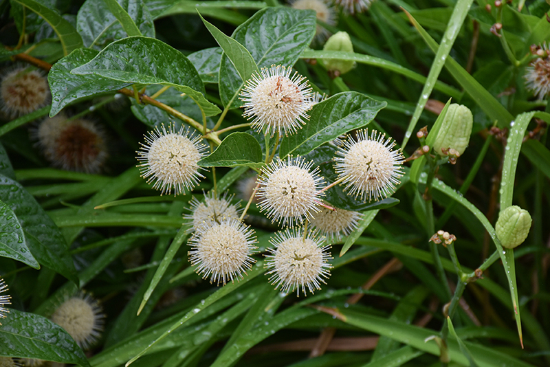 Hardiness Zone: 4b Other Names: Button Willow, Honey Bells Description: An interesting shrub with most unusual flowers, fuzzy white balls that hang at the end of stalks, makes a good conversation piece when in bloom; otherwise, no spectacular ornamental attributes; an excellent choice for very wet sites Ornamental Features Button Bush features unusual creamy white ball-shaped flowers along the branches from early to late summer. It has green deciduous foliage. The pointy leaves do not develop any appreciable fall color. Landscape Attributes Button Bush is a multi-stemmed deciduous shrub with a more or less rounded form. Its average texture blends into the landscape, but can be balanced by one or two finer or coarser trees or shrubs for an effective composition. This shrub will require occasional maintenance and upkeep, and is best pruned in late winter once the threat of extreme cold has passed. It has no significant negative characteristics. Button Bush is recommended for the following landscape applications; Planting & Growing Button Bush will grow to be about 5 feet tall at maturity, with a spread of 5 feet. It tends to fill out right to the ground and therefore doesn't necessarily require facer plants in front, and is suitable for planting under power lines. It grows at a fast rate, and under ideal conditions can be expected to live for approximately 20 years. This shrub does best in full sun to partial shade. It prefers to grow in moist to wet soil, and will even tolerate some standing water. It is not particular as to soil type or pH. It is highly tolerant of urban pollution and will even thrive in inner city environments. This species is native to parts of North America.