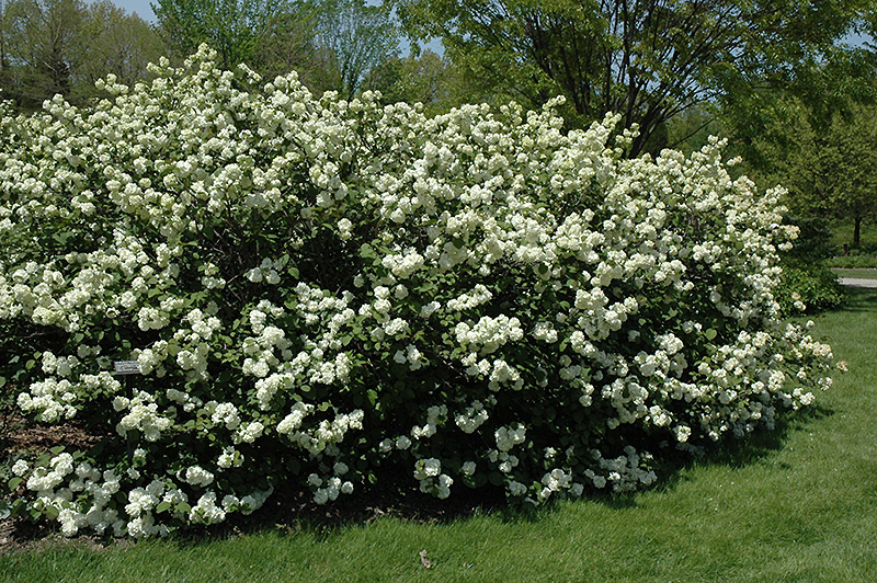 Hardiness Zone: 4b Description: A truly breathtaking shrub when in bloom, clothed in large snowy white flower clusters held atop the branches in spring, as if covered in snow; attractive upward branching and good fall color; makes a fantastic specimen shrub Ornamental Features Grandiflorum Doublefile Viburnum is draped in stunning white lacecap flowers held atop the branches in mid spring. The red fruits are held in abundance in spectacular clusters from mid summer to early fall. It has dark green deciduous foliage. The serrated pointy leaves turn an outstanding brick red in the fall. Landscape Attributes Grandiflorum Doublefile Viburnum is a multi-stemmed deciduous shrub with an upright spreading habit of growth. Its average texture blends into the landscape, but can be balanced by one or two finer or coarser trees or shrubs for an effective composition. This is a relatively low maintenance shrub, and should only be pruned after flowering to avoid removing any of the current season's flowers. It is a good choice for attracting birds to your yard, but is not particularly attractive to deer who tend to leave it alone in favor of tastier treats. It has no significant negative characteristics. Grandiflorum Doublefile Viburnum is recommended for the following landscape applications; Planting & Growing Grandiflorum Doublefile Viburnum will grow to be about 10 feet tall at maturity, with a spread of 12 feet. It has a low canopy, and is suitable for planting under power lines. It grows at a medium rate, and under ideal conditions can be expected to live for 40 years or more. This shrub does best in full sun to partial shade. It does best in average to evenly moist conditions, but will not tolerate standing water. It is not particular as to soil type or pH. It is highly tolerant of urban pollution and will even thrive in inner city environments. This is a selected variety of a species not originally from North America.