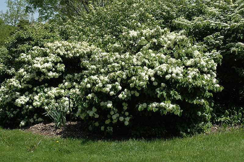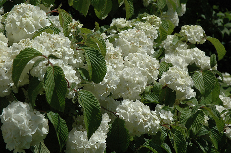 Hardiness Zone: 4b Description: A stunning shrub when in bloom, clothed in large balls of snowy white flowers held at the ends of the branches in spring, as if covered in snow; a dense and compact habit and good fall color; excellent for smaller landscapes Ornamental Features Leach's Compact Doublefile Viburnum is draped in stunning balls of white flowers at the ends of the branches in mid spring. It has dark green deciduous foliage. The serrated pointy leaves turn an outstanding brick red in the fall. Landscape Attributes Leach's Compact Doublefile Viburnum is a dense multi-stemmed deciduous shrub with a more or less rounded form. Its average texture blends into the landscape, but can be balanced by one or two finer or coarser trees or shrubs for an effective composition. This is a relatively low maintenance shrub, and should only be pruned after flowering to avoid removing any of the current season's flowers. It is a good choice for attracting birds to your yard, but is not particularly attractive to deer who tend to leave it alone in favor of tastier treats. It has no significant negative characteristics. Leach's Compact Doublefile Viburnum is recommended for the following landscape applications; Planting & Growing Leach's Compact Doublefile Viburnum will grow to be about 5 feet tall at maturity, with a spread of 5 feet. It has a low canopy, and is suitable for planting under power lines. It grows at a medium rate, and under ideal conditions can be expected to live for 40 years or more. This shrub does best in full sun to partial shade. It does best in average to evenly moist conditions, but will not tolerate standing water. It is not particular as to soil type or pH. It is highly tolerant of urban pollution and will even thrive in inner city environments. This is a selected variety of a species not originally from North America.