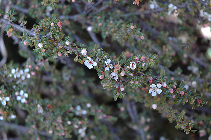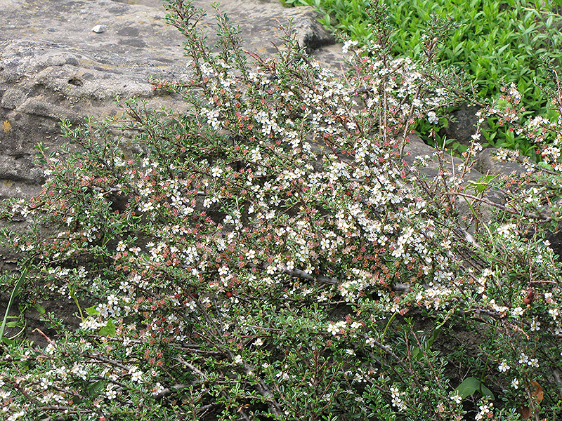 Hardiness Zone: 4b Other Names: Thyme Rockspray Cotoneaster Description: A very showy dwarf variety covered in a froth of white flowers in spring on delicately arching/spreading branches, and showy bright red fruit in fall; tiny foliage adds a fine texture, makes a stunning groundcover Ornamental Features Thyme Leaf Cotoneaster is smothered in stunning clusters of white flowers along the branches in mid spring, which emerge from distinctive salmon flower buds. It has bluish-green deciduous foliage. The glossy oval leaves turn yellow in fall. It produces red berries from late summer to late fall. Landscape Attributes Thyme Leaf Cotoneaster is a multi-stemmed deciduous shrub with a shapely form and gracefully arching branches. It lends an extremely fine and delicate texture to the landscape composition which should be used to full effect. This is a relatively low maintenance shrub, and should only be pruned after flowering to avoid removing any of the current season's flowers. It is a good choice for attracting birds to your yard. Gardeners should be aware of the following characteristic(s) that may warrant special consideration; Thyme Leaf Cotoneaster is recommended for the following landscape applications; Planting & Growing Thyme Leaf Cotoneaster will grow to be about 3 feet tall at maturity, with a spread of 6 feet. It tends to fill out right to the ground and therefore doesn't necessarily require facer plants in front. It grows at a medium rate, and under ideal conditions can be expected to live for approximately 30 years. This shrub should only be grown in full sunlight. It is very adaptable to both dry and moist growing conditions, but will not tolerate any standing water. It is not particular as to soil type or pH, and is able to handle environmental salt. It is highly tolerant of urban pollution and will even thrive in inner city environments. This is a selected variety of a species not originally from North America.
