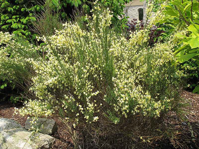 Hardiness Zone: 5b Other Names: False Heather, Scotch Broom Description: A high quality flowering shrub for difficult places with dry, infertile soil, excellent for use in massing; bright yellow and white flowers in spring in a densely branched, twiggy mound; best used in specific landscape situations Ornamental Features Allgold Broom is clothed in stunning lightly-scented yellow pea-like flowers with white overtones along the branches from mid to late spring. It has grayish green deciduous foliage. The small compound leaves do not develop any appreciable fall color. The smooth bark and lime green branches add an interesting dimension to the landscape. Landscape Attributes Allgold Broom is an open multi-stemmed deciduous shrub with a shapely form and gracefully arching branches. Its relatively fine texture sets it apart from other landscape plants with less refined foliage. This is a high maintenance shrub that will require regular care and upkeep, and is best pruned in late winter once the threat of extreme cold has passed. Gardeners should be aware of the following characteristic(s) that may warrant special consideration; Allgold Broom is recommended for the following landscape applications; Planting & Growing Allgold Broom will grow to be about 5 feet tall at maturity, with a spread of 6 feet. It tends to fill out right to the ground and therefore doesn't necessarily require facer plants in front, and is suitable for planting under power lines. It grows at a medium rate, and under ideal conditions can be expected to live for approximately 20 years. This shrub should only be grown in full sunlight. It prefers dry to average moisture levels with very well-drained soil, and will often die in standing water. It is considered to be drought-tolerant, and thus makes an ideal choice for xeriscaping or the moisture-conserving landscape. It is particular about its soil conditions, with a strong preference for clay, alkaline soils, and is able to handle environmental salt. It is highly tolerant of urban pollution and will even thrive in inner city environments. This particular variety is an interspecific hybrid.