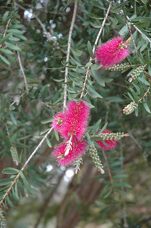 Hardiness Zone: 7b Other Names: Purple Bottlebrush Description: An elegant and colorful flower variety that is making a comback; intense violet and hot pink blooms are large and eye catching and bloom sporadically through the summer Ornamental Features Violet Bottlebrush features showy spikes of hot pink catkins with violet overtones and yellow tips at the ends of the branches from mid spring to late fall. It has green deciduous foliage. The narrow leaves do not develop any appreciable fall color. Landscape Attributes Violet Bottlebrush is an open multi-stemmed deciduous shrub with an upright spreading habit of growth. It lends an extremely fine and delicate texture to the landscape composition which can make it a great accent feature on this basis alone. This is a relatively low maintenance shrub, and is best pruned in late winter once the threat of extreme cold has passed. It is a good choice for attracting bees and hummingbirds to your yard. It has no significant negative characteristics. Violet Bottlebrush is recommended for the following landscape applications; Planting & Growing Violet Bottlebrush will grow to be about 8 feet tall at maturity, with a spread of 8 feet. It has a low canopy, and is suitable for planting under power lines. It grows at a medium rate, and under ideal conditions can be expected to live for approximately 20 years. This shrub does best in full sun to partial shade. It prefers to grow in average to moist conditions, and shouldn't be allowed to dry out. It is not particular as to soil type or pH. It is somewhat tolerant of urban pollution. This particular variety is an interspecific hybrid. Violet Bottlebrush makes a fine choice for the outdoor landscape, but it is also well-suited for use in outdoor pots and containers. With its upright habit of growth, it is best suited for use as a 'thriller' in the 'spiller-thriller-filler' container combination; plant it near the center of the pot, surrounded by smaller plants and those that spill over the edges. It is even sizeable enough that it can be grown alone in a suitable container. Note that when grown in a container, it may not perform exactly as indicated on the tag - this is to be expected. Also note that when growing plants in outdoor containers and baskets, they may require more frequent waterings than they would in the yard or garden.