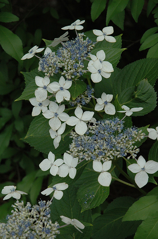 Hardiness Zone: 5b Other Names: French Hydrangea, Bigleaf Hydrangea Description: This outstanding variety produces abundant flowers with a lacey appearance; white sterile florets surround tiny baby-blue fertile flowers, whos color is affected by soil acidity, for pink hues add lime; lighter green floliage enhances shaded areas Ornamental Features Lanarth White Hydrangea features bold white lacecap flowers with powder blue overtones at the ends of the branches from early summer to early fall. The flowers are excellent for cutting. It has green deciduous foliage. The serrated pointy leaves do not develop any appreciable fall color. Landscape Attributes Lanarth White Hydrangea is a multi-stemmed deciduous shrub with a more or less rounded form. Its relatively coarse texture can be used to stand it apart from other landscape plants with finer foliage. This shrub will require occasional maintenance and upkeep, and should only be pruned after flowering to avoid removing any of the current season's flowers. It has no significant negative characteristics. Lanarth White Hydrangea is recommended for the following landscape applications; Planting & Growing Lanarth White Hydrangea will grow to be about 5 feet tall at maturity, with a spread of 6 feet. It tends to be a little leggy, with a typical clearance of 1 foot from the ground, and is suitable for planting under power lines. It grows at a fast rate, and under ideal conditions can be expected to live for approximately 20 years. This shrub does best in full sun to partial shade. You may want to keep it away from hot, dry locations that receive direct afternoon sun or which get reflected sunlight, such as against the south side of a white wall. It requires an evenly moist well-drained soil for optimal growth. It is not particular as to soil type, but has a definite preference for acidic soils. It is highly tolerant of urban pollution and will even thrive in inner city environments, and will benefit from being planted in a relatively sheltered location. Consider applying a thick mulch around the root zone in both summer and winter to conserve soil moisture and protect it in exposed locations or colder microclimates. This is a selected variety of a species not originally from North America. Lanarth White Hydrangea makes a fine choice for the outdoor landscape, but it is also well-suited for use in outdoor pots and containers. Because of its height, it is often used as a 'thriller' in the 'spiller-thriller-filler' container combination; plant it near the center of the pot, surrounded by smaller plants and those that spill over the edges. It is even sizeable enough that it can be grown alone in a suitable container. Note that when grown in a container, it may not perform exactly as indicated on the tag - this is to be expected. Also note that when growing plants in outdoor containers and baskets, they may require more frequent waterings than they would in the yard or garden.