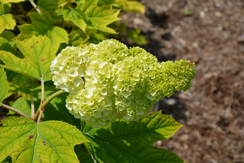Hardiness Zone: 5a Other Names: Oak Leaf Hydrangea Description: Dense full heads of white flowers which fade from pure white to pink, smother this lovely plant over a long season; interesting lobed foliage with burgundy fall color, and papery bark; somewhat coarse in appearance, best used in groupings Ornamental Features Vaughn's Lillie Hydrangea features bold fragrant conical white flowers with pink overtones at the ends of the branches from early summer to early fall, which emerge from distinctive lime green flower buds. The flowers are excellent for cutting. It has dark green deciduous foliage which emerges grayish green in spring. The lobed leaves turn an outstanding burgundy in the fall. The peeling brick red bark adds an interesting dimension to the landscape. Landscape Attributes Vaughn's Lillie Hydrangea is a multi-stemmed deciduous shrub with an upright spreading habit of growth. Its relatively coarse texture can be used to stand it apart from other landscape plants with finer foliage. This is a relatively low maintenance shrub, and is best pruned in late winter once the threat of extreme cold has passed. It has no significant negative characteristics. Vaughn's Lillie Hydrangea is recommended for the following landscape applications; Planting & Growing Vaughn's Lillie Hydrangea will grow to be about 4 feet tall at maturity, with a spread of 5 feet. It tends to fill out right to the ground and therefore doesn't necessarily require facer plants in front. It grows at a slow rate, and under ideal conditions can be expected to live for approximately 30 years. This shrub does best in full sun to partial shade. It prefers to grow in average to moist conditions, and shouldn't be allowed to dry out. It is not particular as to soil type or pH. It is somewhat tolerant of urban pollution, and will benefit from being planted in a relatively sheltered location. Consider applying a thick mulch around the root zone in winter to protect it in exposed locations or colder microclimates. This is a selection of a native North American species. Vaughn's Lillie Hydrangea makes a fine choice for the outdoor landscape, but it is also well-suited for use in outdoor pots and containers. With its upright habit of growth, it is best suited for use as a 'thriller' in the 'spiller-thriller-filler' container combination; plant it near the center of the pot, surrounded by smaller plants and those that spill over the edges. It is even sizeable enough that it can be grown alone in a suitable container. Note that when grown in a container, it may not perform exactly as indicated on the tag - this is to be expected. Also note that when growing plants in outdoor containers and baskets, they may require more frequent waterings than they would in the yard or garden.