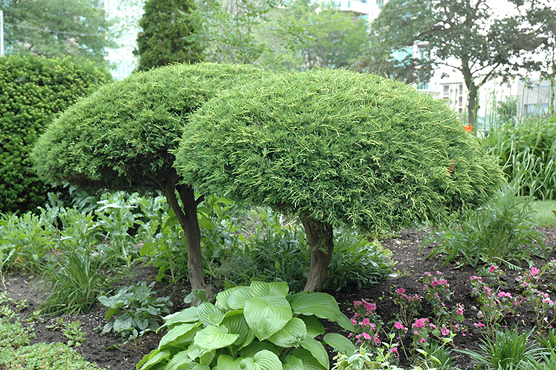 Hardiness Zone: 3b Description: This medium sized sprawling shrub with widely arching branches and slightly drooping tips is grafted to a standard to raise it above the garden, excellent green color; makes a spectacular garden accent or feature element Ornamental Features Pfitzer Juniper (tree form) is primarily valued in the landscape or garden for its highly ornamental lollipop-like shape. It has attractive grayish green evergreen foliage. The scale-like sprays of foliage are highly ornamental and remain grayish green throughout the winter. It produces blue berries from late spring to late winter. Landscape Attributes Pfitzer Juniper (tree form) is an evergreen dwarf tree, selected and trained to grow in a small tree-like form with the primary plant grafted high atop a standard. It lends an extremely fine and delicate texture to the landscape composition which can make it a great accent feature on this basis alone. This is a relatively low maintenance dwarf tree, and is best pruned in late winter once the threat of extreme cold has passed. Deer don't particularly care for this plant and will usually leave it alone in favor of tastier treats. It has no significant negative characteristics. Pfitzer Juniper (tree form) is ideal for use as a garden accent or patio feature, and is recommended for the following landscape applications; Planting & Growing Pfitzer Juniper (tree form) will grow to be about 6 feet tall at maturity, with a spread of 8 feet. It tends to be a little leggy, with a typical clearance of 2 feet from the ground, and is suitable for planting under power lines. It grows at a slow rate, and under ideal conditions can be expected to live for approximately 30 years. This dwarf tree should only be grown in full sunlight. It is very adaptable to both dry and moist growing conditions, but will not tolerate any standing water. It is not particular as to soil type or pH. It is highly tolerant of urban pollution and will even thrive in inner city environments. This particular variety is an interspecific hybrid.