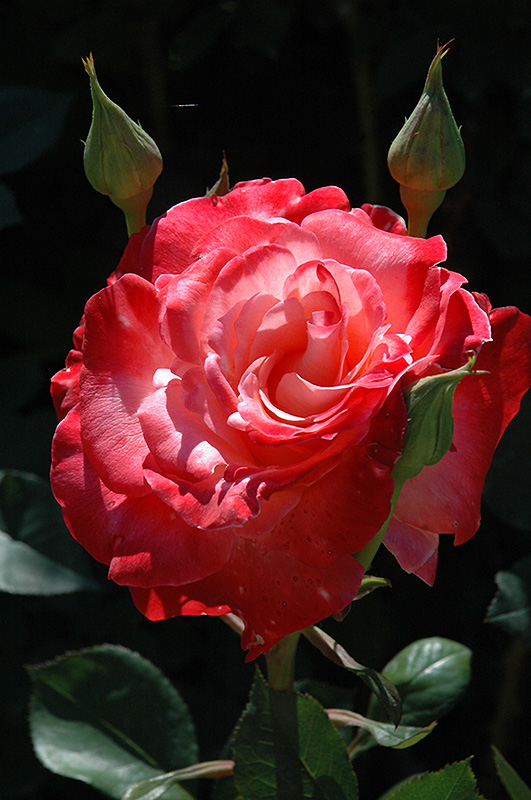 Hardiness Zone: 4b Group/Class: Hybrid Tea Rose Description: Large blossoms in coral and cream tones deepen in color intensity as they age; long lasting blooms give a constant show all season in the garden or along borders; excellent cut flowers Ornamental Features Brigadoon Rose features showy lightly-scented double coral-pink flowers with creamy white overtones at the ends of the branches from late spring to early fall. The flowers are excellent for cutting. It has dark green deciduous foliage. The glossy oval compound leaves do not develop any appreciable fall color. Landscape Attributes Brigadoon Rose is a multi-stemmed deciduous shrub with an upright spreading habit of growth. Its average texture blends into the landscape, but can be balanced by one or two finer or coarser trees or shrubs for an effective composition. This shrub will require occasional maintenance and upkeep, and is best pruned in late winter once the threat of extreme cold has passed. It has no significant negative characteristics. Brigadoon Rose is recommended for the following landscape applications; Planting & Growing Brigadoon Rose will grow to be about 5 feet tall at maturity, with a spread of 5 feet. It tends to fill out right to the ground and therefore doesn't necessarily require facer plants in front, and is suitable for planting under power lines. It grows at a fast rate, and under ideal conditions can be expected to live for approximately 30 years. This shrub should only be grown in full sunlight. It does best in average to evenly moist conditions, but will not tolerate standing water. It is not particular as to soil type or pH. It is highly tolerant of urban pollution and will even thrive in inner city environments. This particular variety is an interspecific hybrid.