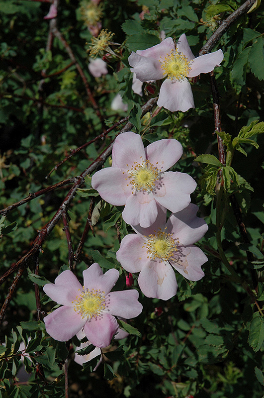 Hardiness Zone: 5b Other Names: Pasture Rose Description: A native rose variety that occurs in average to wet soils; features single pink flowers with yellow centers that bloom in mid-spring only; hips appear in late summer adding fall interest; excellent for pond edges and rock gardens Ornamental Features Carolina Rose features showy clusters of lightly-scented pink flowers with yellow eyes at the ends of the branches in mid spring. The flowers are excellent for cutting. It has dark green deciduous foliage. The glossy oval compound leaves do not develop any appreciable fall color. The fruits are showy red hips displayed in late summer. Landscape Attributes Carolina Rose is a multi-stemmed deciduous shrub with an upright spreading habit of growth. Its average texture blends into the landscape, but can be balanced by one or two finer or coarser trees or shrubs for an effective composition. This shrub will require occasional maintenance and upkeep, and is best pruned in late winter once the threat of extreme cold has passed. It is a good choice for attracting birds, bees and butterflies to your yard. Gardeners should be aware of the following characteristic(s) that may warrant special consideration; Carolina Rose is recommended for the following landscape applications; Planting & Growing Carolina Rose will grow to be about 6 feet tall at maturity, with a spread of 10 feet. It tends to fill out right to the ground and therefore doesn't necessarily require facer plants in front, and is suitable for planting under power lines. It grows at a fast rate, and under ideal conditions can be expected to live for approximately 30 years. This shrub should only be grown in full sunlight. It is quite adaptable, prefering to grow in average to wet conditions, and will even tolerate some standing water. It is not particular as to soil type or pH. It is somewhat tolerant of urban pollution. This species is native to parts of North America.