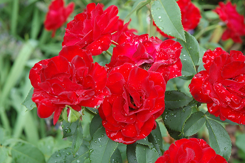 Hardiness Zone: 5b Group/Class: Hybrid Tea Rose Description: Large, very fragrant cherry red blossoms that deepen in color to crimson as they age; long lasting blooms give a constant show all season in the garden or along borders; excellent cut flowers Ornamental Features Dame de Coeur Rose features showy clusters of fragrant double cherry red flowers at the ends of the branches from mid spring to early fall. The flowers are excellent for cutting. It has green deciduous foliage. The glossy oval compound leaves do not develop any appreciable fall color. Landscape Attributes Dame de Coeur Rose is a multi-stemmed deciduous shrub with an upright spreading habit of growth. Its average texture blends into the landscape, but can be balanced by one or two finer or coarser trees or shrubs for an effective composition. This shrub will require occasional maintenance and upkeep, and is best pruned in late winter once the threat of extreme cold has passed. It is a good choice for attracting bees to your yard. It has no significant negative characteristics. Dame de Coeur Rose is recommended for the following landscape applications; Planting & Growing Dame de Coeur Rose will grow to be about 4 feet tall at maturity, with a spread of 4 feet. It tends to fill out right to the ground and therefore doesn't necessarily require facer plants in front. It grows at a fast rate, and under ideal conditions can be expected to live for approximately 30 years. This shrub should only be grown in full sunlight. It does best in average to evenly moist conditions, but will not tolerate standing water. It is not particular as to soil type or pH. It is highly tolerant of urban pollution and will even thrive in inner city environments. This particular variety is an interspecific hybrid.